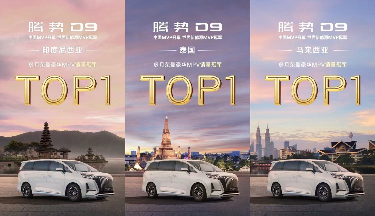 自上市以來,騰勢D9已連續兩年包攬國內MPV銷量、保值率、用戶滿意度“三冠王”。今年6月,騰勢D9第25萬臺量產車正式下線,成為全球首款達成25萬臺量產的新能源MPV,是中國的MPV冠軍,也是世界新能源MPV冠軍。 榮登海外豪華MPV銷量冠軍,銷量口碑雙開花 騰勢D9不僅在國內MPV領域持續領跑,在海外市場表現同樣十分亮眼。目前,騰勢已進入新加坡、泰國、印度尼西亞、馬來西亞、中國港澳地區等多個亞太市場。在日系MPV曾長期“霸榜”的東南亞市場,騰勢D9摘得泰國、印度尼西亞、馬來西亞今年上半年的豪華MPV銷量桂冠。此外,還成為印度尼西亞1-6月最暢銷電動車榜亞軍和泰國1-5月新能源汽車銷量 TOP10 車型之一。在港澳地區,騰勢D9則獲得澳門市場今年上半年新能源MPV銷量和國產MPV銷量雙冠軍,也是自上市以來香港電動MPV累積上牌量第一的車型。 騰勢D9不僅銷量領先,更以顛覆性產品力接連斬獲國際權威獎項。自海外及港澳上市以來,騰勢D9接連斬獲印度尼西亞2025年“年度最佳汽車獎”、中國香港2024超卓汽車大獎“卓越豪華純電MPV”稱號、新加坡年度MPV大獎等多個獎項,實現銷量與口碑雙豐收。