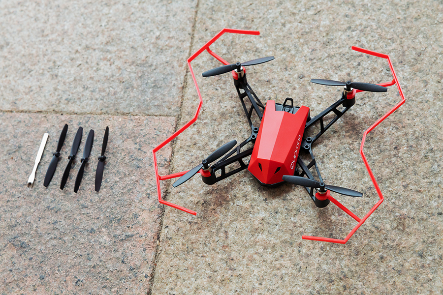 配件方面有紅色的保護(hù)支架,備用的螺旋槳,以及兩塊電池容量為650mAh的可拆卸電池。