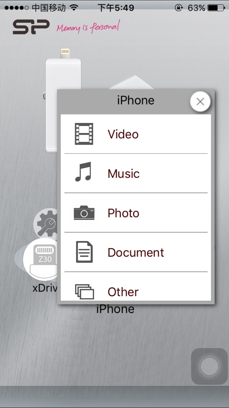 SP xDrive Explorer支持MP3音訊格式及MP4, MOV, M4V, MPG, AVI, MKV, WMV, RMVB多種影片檔的播放,使用者只要把喜歡的影片或音樂預先存在Z30并插上蘋果手持裝置就可直接播放,不用再看網絡聯機狀況的臉色、時不時忍受卡卡的觀看質量,更大作用莫過于手機一下子增大了容量,乞丐版秒變高富帥!平時不舍得放進手機內的電視劇、電影或者高品質音樂,現在都能一次過任性放滿,絕對是果粉們一舉兩得的娛樂新選擇。