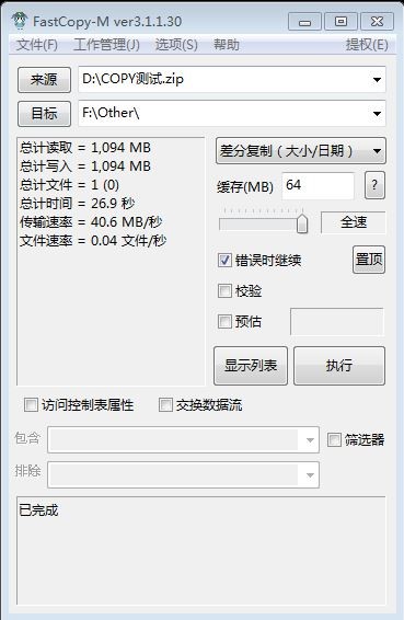 首先把1094MB的文件拷入Z30雙用 U盤中,耗26.9秒,傳輸速率是40.6MB/秒。也就是說,將一部1080p的高清電影傳輸至U盤僅需花費3-4分鐘(一般1080p/110分鐘電影約10G左右)。而把1094MB大小的文件從雙用U盤里拷貝出來,耗時7.2秒,傳輸速率達到151.5MB/秒。在USB 3.0的U盤中也屬于中上水平了。