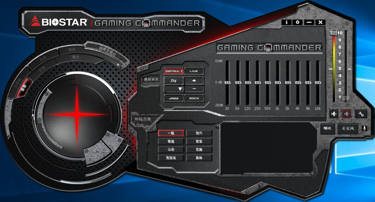 音頻特效控制程序,界面比較簡單,但是常用功能一個不少,可以設置各種情景模式