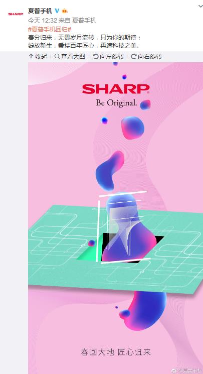 今天午間12點左右,夏普手機的官微使用“夏普手機回歸”的話題正式宣布自己的回歸。