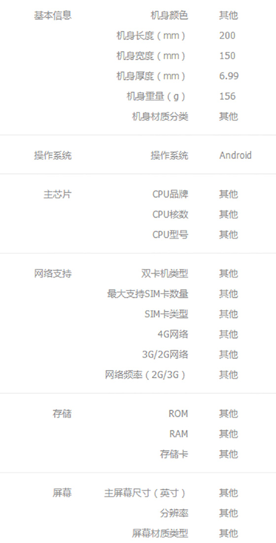 打開產品詳情界面一看,CPU/電池大小/手機像素等具體參數通通都是其他也就是未知,也就知道標配版的存儲為2+16GB ROM,看樣子360F5這款產品的配置不妙。