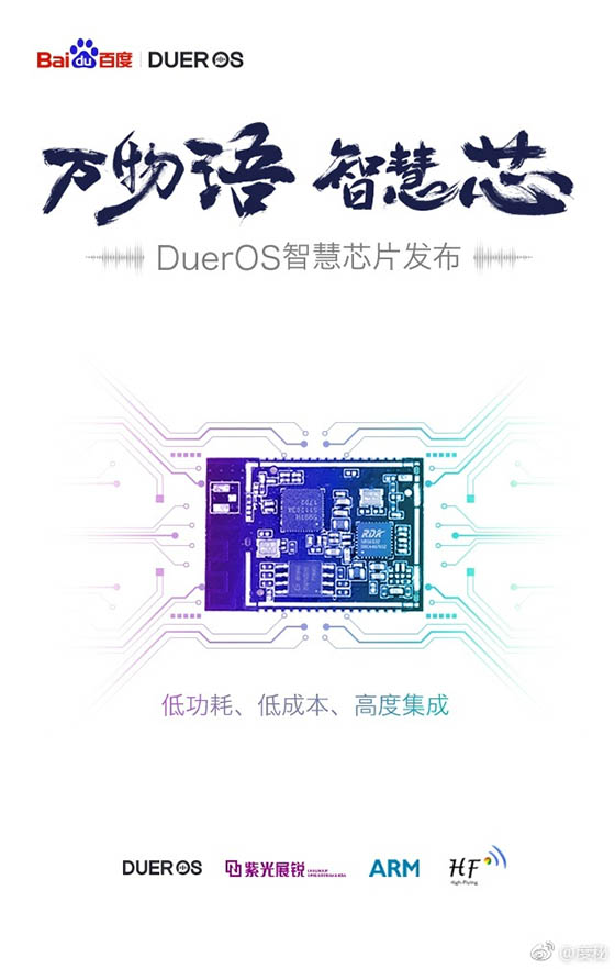 近日,百度在上海召開了發布會,對外發布一款名字叫做DuerOS的智慧芯片,并與紫光展銳、ARM、上海漢楓達成戰略合作。