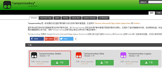 或者輸入http://tampermonkey.net/下載符合你瀏覽器的Tampermonkey版本,此處由于小編使用的是chrome內核的360極速瀏覽器,所以選擇stable版本下載安裝。(需要特殊手段才能下載下來,至于什么手段你懂得)