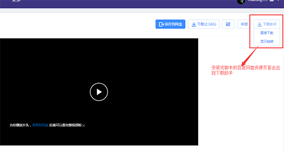 4. 驗證腳本情況,我們選擇某一百度網盤資源測試,出現了下載助手則是成功了,我們選擇直接下載,直接調用了迅雷(需要提前設置,默認瀏覽器下載工具為迅雷),實現了高速下載,突破了百度網盤客戶端限速的目的。