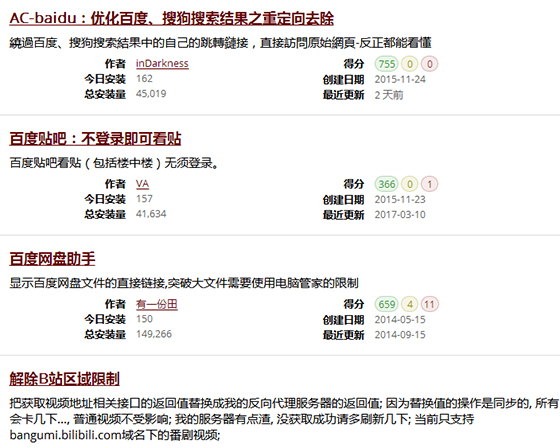 2.安裝腳本:進入https://greasyfork.org/zh-CN/scripts選擇你要安裝的腳本,小編選擇的是前兩個腳本,點擊完安裝后腳本網頁會自動關閉。