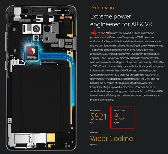 在今年的CES2017大會(huì)上華碩的ZenFone AR成為全球首臺(tái)擁有8GB運(yùn)行內(nèi)存的手機(jī)。