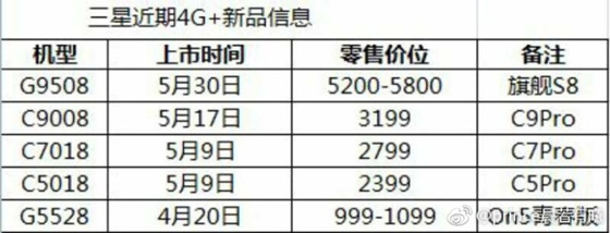 近日,有一些微博網(wǎng)友透露出國行S8更詳細(xì)的一些信息,其中提到三星Galaxy S8或?qū)⒂?月15日發(fā)布,5月25日發(fā)售,而價(jià)格區(qū)間則為5200-5800元,此外還有型號(hào)為SM-G9508的移動(dòng)定制版將于5月30日開賣,售價(jià)有可能低至5288元。而6GB RAM+128GB ROM配置將僅限Galaxy S8+獨(dú)占,小屏的S8似乎還沒有6GB大內(nèi)存版本。