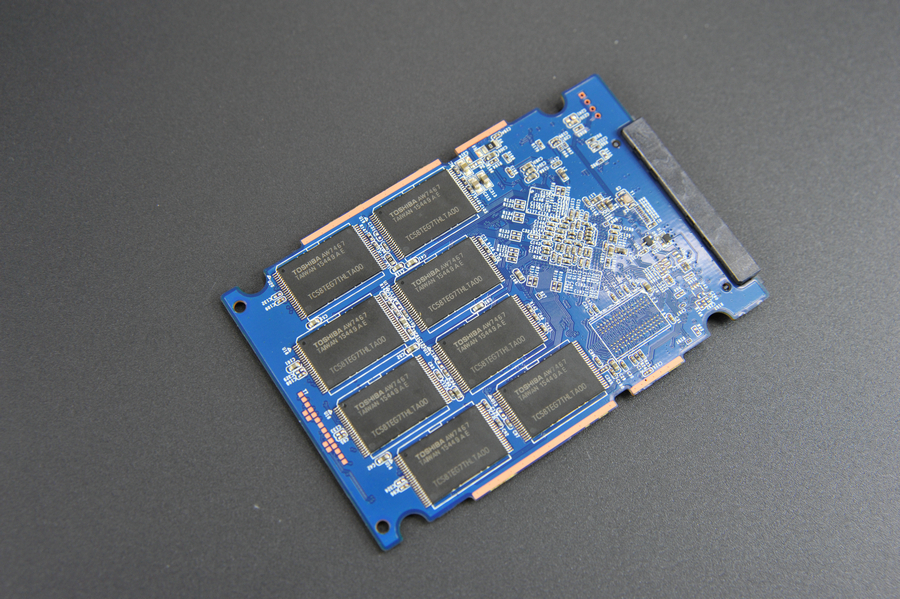 依舊標準的2.5英寸PCB板設計,1顆主控芯片及1顆緩存芯片,正反面各8顆閃存芯片。