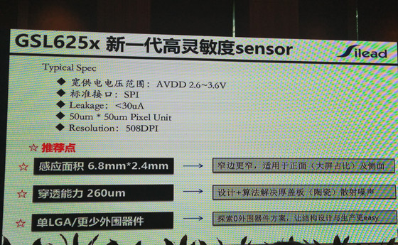 思立微電子推出的“GSL625x高靈敏度sensor”采用精簡設計,減少外圍器件,同時將感應面積壓縮到6.8mm×2.4mm,讓諸如三星S8一類上下超窄邊設計,也有能力把指紋識別放到正面,或者是放到手機側面邊框上。