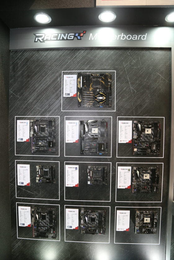 映泰的展臺采用了相當酷炫的科技加賽車風布置,頂上的LED燈條全彩循環,呼應電競主板特色,顏值高性能足,十足映泰范兒!