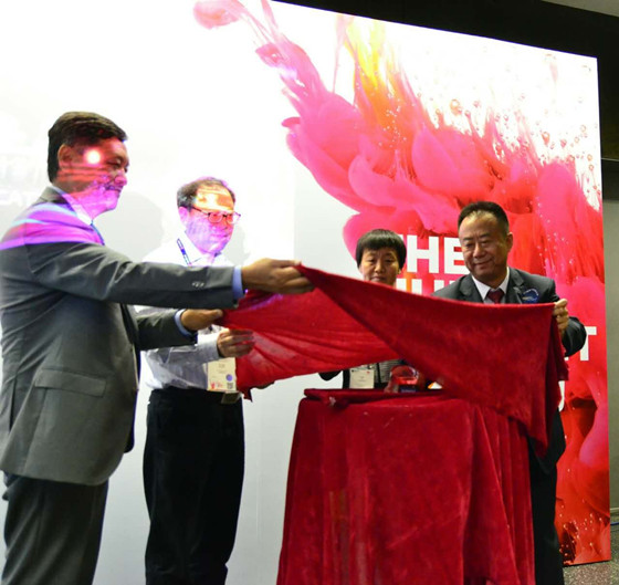 隨后,北京郵電大學研究生院院長王文博、簡約納公司的合作伙伴ACP公司的董事長黃秋庭等貴賓也先后致辭,并一同揭幕了今天的主角——簡約納SL3600全網通基帶芯片。
