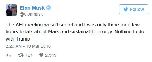 馬斯克表示,雖然自己確實不太喜歡特朗普這種大嘴巴,但他們只是在會議上討論火星問題和可持續新能源的發展和建設問題。