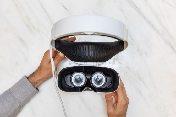 戴爾Visor配備有兩個(gè)1440×1440分辨率的顯示器,可以在不取下整個(gè)設(shè)備的情況下將顯示器部分翻轉(zhuǎn)上去,快速?gòu)奶摂M環(huán)境回到現(xiàn)實(shí),可以方便地應(yīng)對(duì)一些臨時(shí)狀況,如接聽(tīng)來(lái)電、有人敲門(mén)等。同時(shí),戴爾還宣稱,即使是配戴眼鏡的人士,在使用Visor的時(shí)候也能得到很舒適的體驗(yàn)。