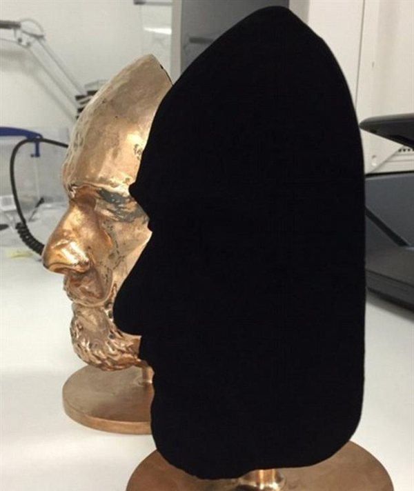 最不可思議的是,任何物體涂上這種材料,都能讓3D物體看上去像一個2維平面的洞,更不可能看清楚物體表面的細節,當然在噴漆前還需要很多步驟,才能達到超低反射的效果。