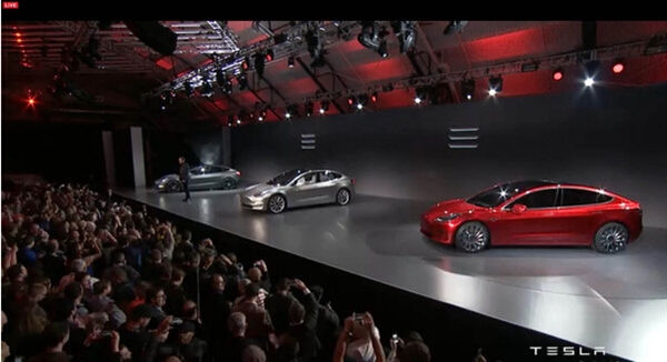 北京時間今天中午,傳聞中的特斯拉平民電動車:Model 3如期揭開了自己神秘的面紗,并在全球官網和授權經銷商接受預定。