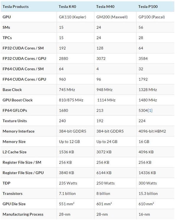 本次發布的是Tesla P100計算卡,首發GP100頂級核心,基于16nm FinFET工藝打造,面積達到了610平方毫米,150億顆晶體管。雙精度運算能力是5.3Teraflops,單精度為10.6Teraflops。內建3840個CUDA核心、240個紋理單元、最高32GB HBM2顯存、位寬4096bit。另外還有支持NVLink總線(互連帶寬160GB/s)、采用夾層接口等特性。