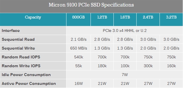就在今天,鎂光發(fā)布了9100/7100兩個系列的SSD,采用PCI-E 3.0、NVMe、U.2等強大技術(shù),閃存方面采用的是自家的16nm MLC NAND。