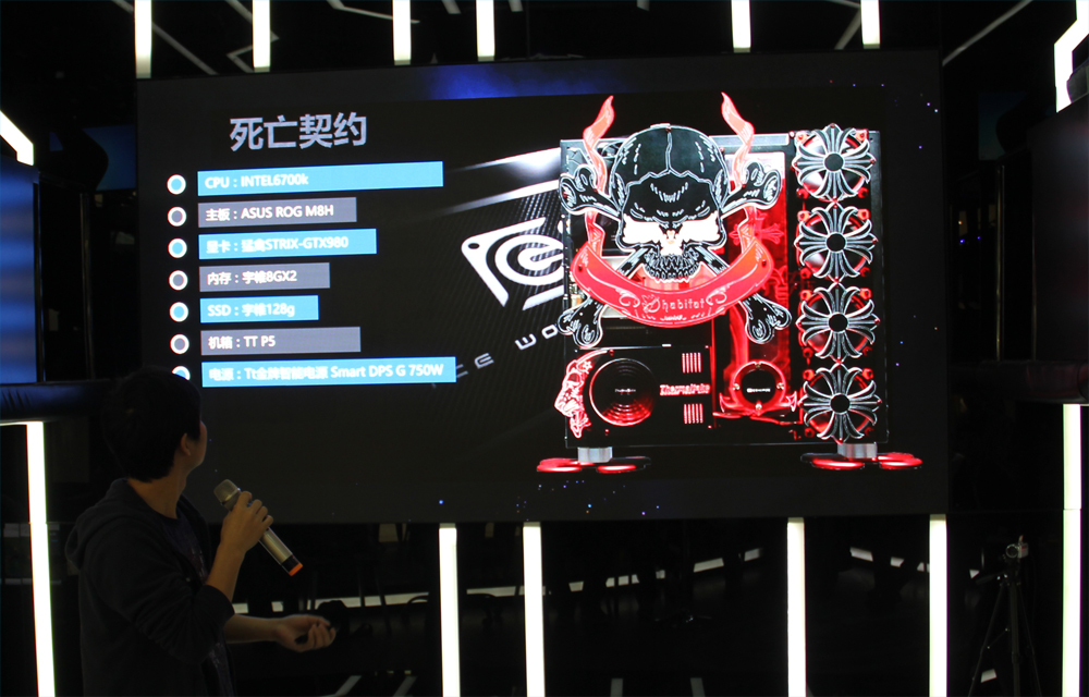 IceWolf在活動現場詳細的為廣大玩家介紹了這臺“死亡契約”,這臺DIY作品在機箱和電源上都采用了Tt的產品,這也向玩家們完美詮釋了Tt對于高端DIY的作用。