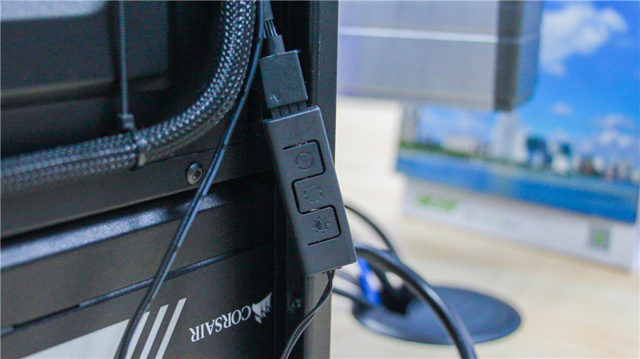 即便是無法進行主板燈光同步,T620P RGB也可以使用自帶的RGB C10L控制器用來操控燈光。控制器的大小可以很好的藏在背線空間內,通過控制器可以進行色彩、燈效的切換,操作還是很簡便的。