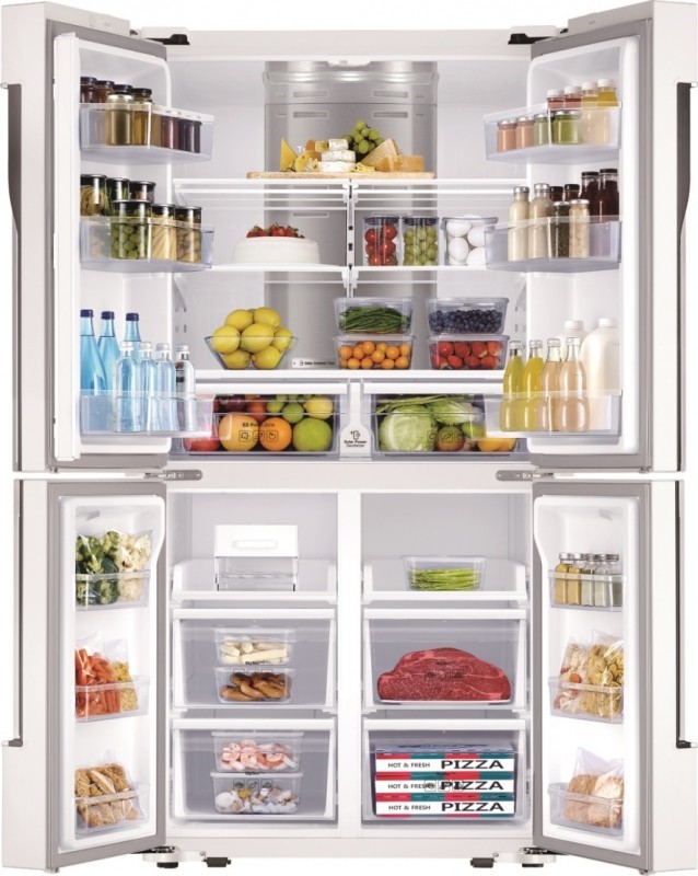 T-Style冰箱四大特點 美味保鮮有訣竅三星以獨特創新科技打造全新三循環多門旗艦系列冰箱,頂級三循環冷卻系統設計,使冷凍室與冷藏室三大儲存空間各自擁有獨立蒸發器與風扇,讓冷藏維持高效保濕,保濕程度高達70%鎖住食物水分,保持食材新鮮。擁有超大901L容量及超寬敞儲存空間(寬度達83公分),而獨立冷流使冷凍冷藏不相互干擾,食物氣味不混雜,保留最純粹的風味。智慧溫控具備四種溫控調整,可依消費者需求將溫度調成冷凍-23~-17,鮮冷凍-5,微冷凍-1,冷藏2 °C,透過溫控室彈性空間的運用,可將冷凍室變換為冷藏室(加上保護文字僅限右下儲存空間),隨心所欲的切換各種模式,在最佳溫度下延長食材儲存時間,滿足多元需求。冷藏室內搭不銹鋼鎖冷板,用以穩定冰箱內部的冷藏效果,在頻繁開關冰箱門時,可讓內部冷藏溫度快速回到最適低溫,確保食材新鮮度。