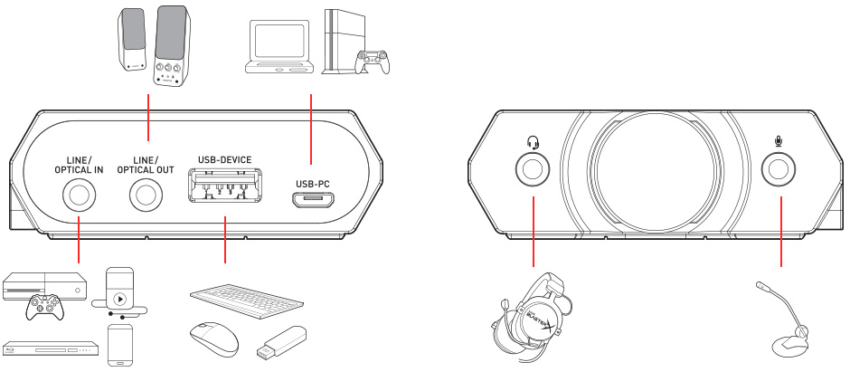 G5集成了多種音頻解決方案,支持多種輸入和輸出接口PC,游戲機,音箱,耳機,麥克風甚至連鼠標鍵盤也可以連接到G5,簡直就是一步到位,讓你在游戲世界中暢游無阻。