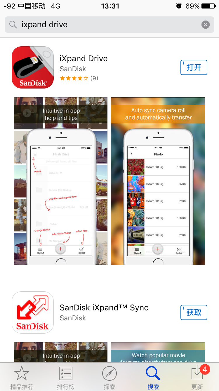 看完了外觀,我們先從手機端來測試一下閃迪第二代iXpand歡欣i享蘋果U盤。我們使用的測試機是國行iPhone6s,首先需要裝APP,在App Store上搜索iXpand Drive下載安裝就可以啦。