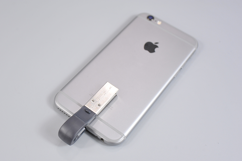 插上U盤的iPhone6s正面,官方宣稱對接口進行了優(yōu)化設計,兼容性非常好,可以兼容各種手機殼