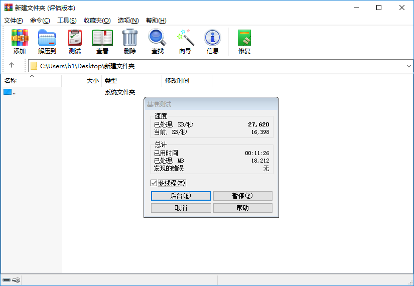 在日常生活中,內存性能對解壓縮的速度有著相當直接的影響。我們進行WinRAR自帶的基準測試,測試時間10分鐘。