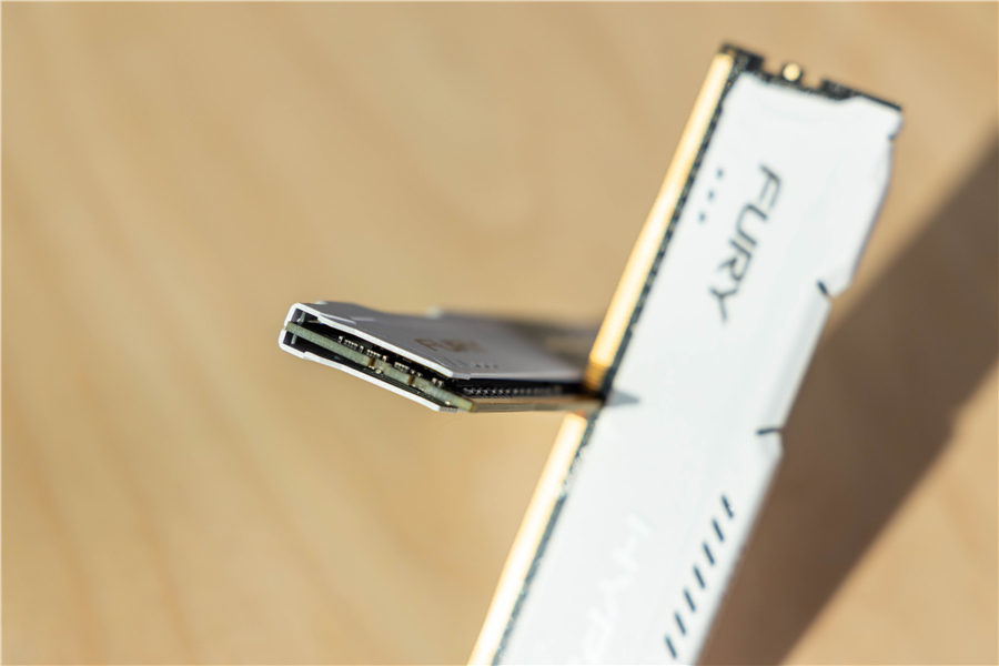 馬甲造型并不夸張,不張揚卻還是挺酷的,同時還很厚實。在保證了散熱效果的同時,Fury的內存高度基本維持了與裸條差不多的水準,這一點相當好評。這讓它的泛用度相當廣泛,基本不會遇到那些高高的馬甲條阻擋了散熱或其他部件的情況。畢竟選擇Fury的玩家也不會在乎那點RGB燈效。