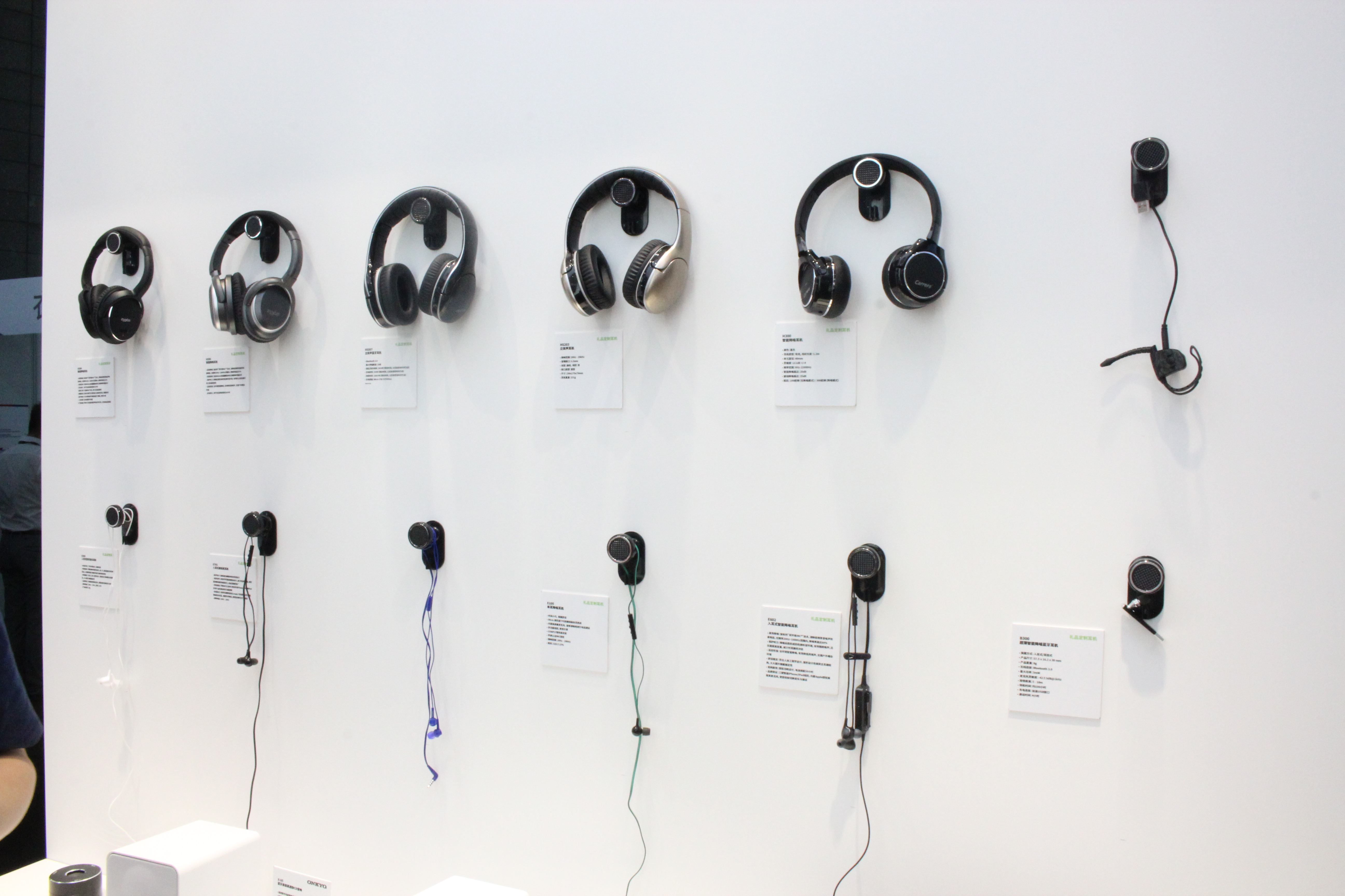 這面墻上的這些耳機都是可以定制的耳機,你可以在上面打印上你喜歡的圖案,文字,非常適合送人。