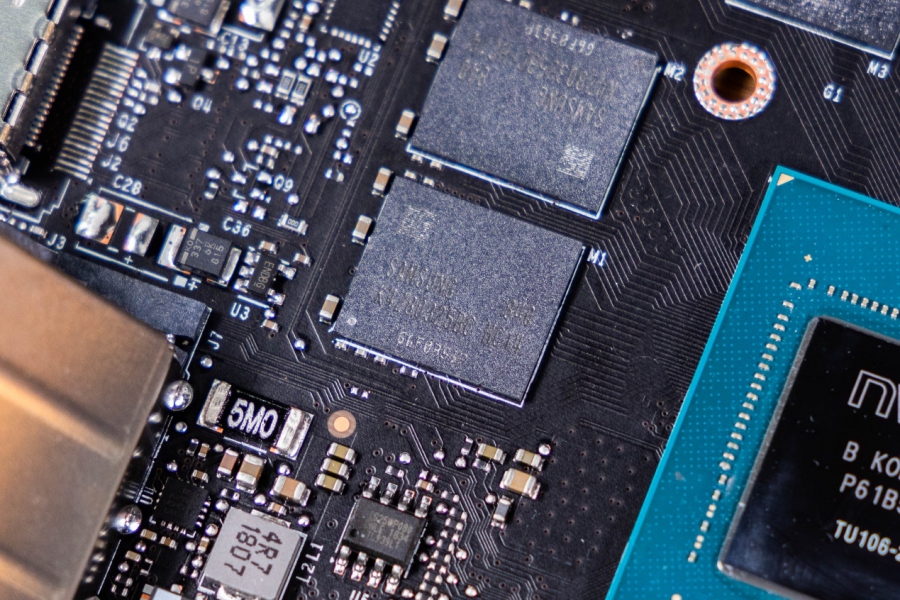 顯存的位置空焊了兩顆,顯存采用的是三星的GDDR6顆粒,這點絕對好評。老司機都知道,三星顯存就是“能超”的代名詞。坊間傳聞早期的公版RTX 2080Ti由于采用了美光顯存而導致花屏故障,隨后NVIDIA在新批次中就采用了三星顆粒解決了問題。這個傳言的前半部分不知真假,但至少說明RTX 2060是新批次產出的