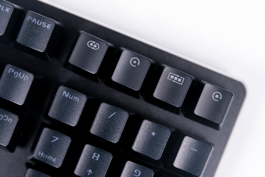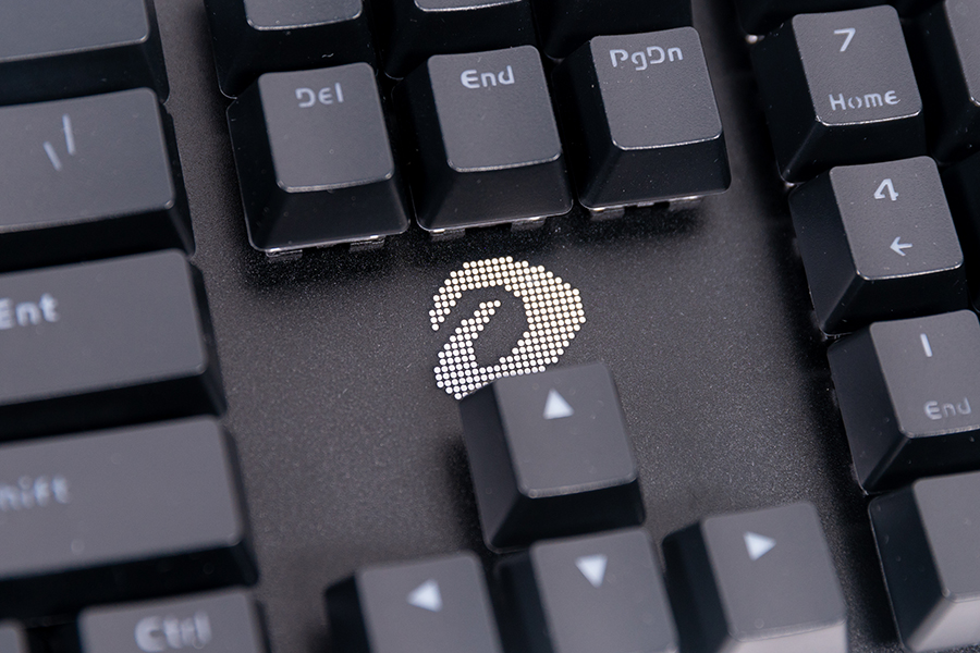 達爾優的Logo顯眼的標記在了建爬上四個方向鍵的上方,同時還有一個小型達爾優Logo位于問號鍵的下方,看到FN的標記就可以知道這是達爾優的一個自定義按鍵了,那么這個自定義按鍵有什么作用呢?這就要我們將視線轉到鍵盤的右上角了。