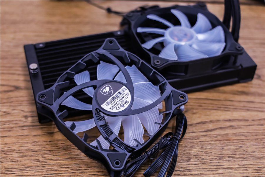 Helor 240散熱器搭配了兩把Vortex Omega 120 RGB風扇,支持PWM溫控,轉速600-1800RPM,最高風量78.4 CFM 風量,靜風壓2.4 mm-H2O,最高風噪37.1dBA。