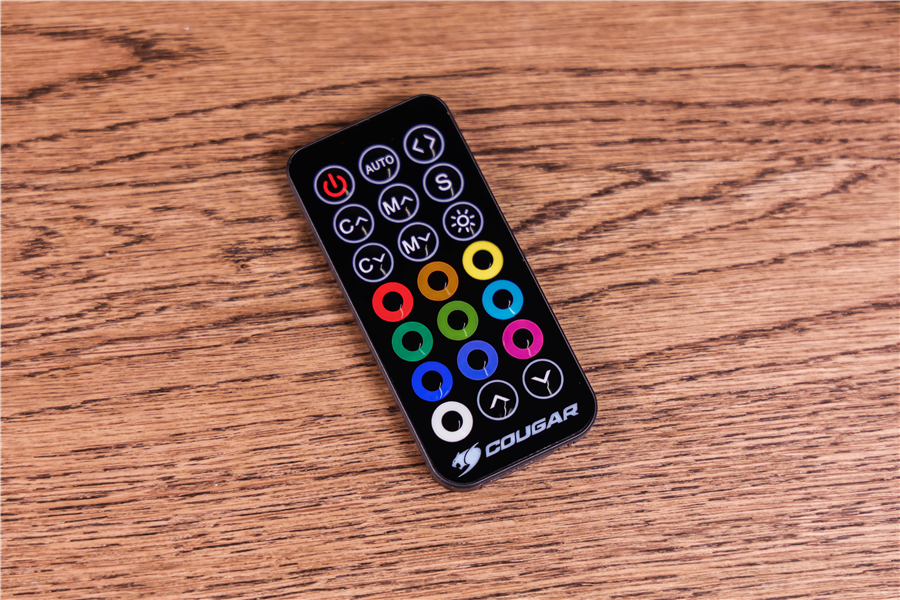 作為新一代燈廠,骨伽在RGB系統(tǒng)的整合與控制方面考慮得相當周到。配合集成式RGB控制盒,我們能夠通過自帶的遙控器對機箱和散熱器的光效進行非常細致的控制。