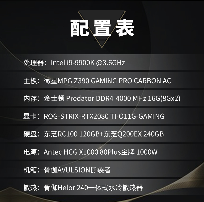 骨伽第一款水冷散熱器自然要搭配自家的開放式機箱來一起亮,所以我們這次選用骨伽AVULSION撕裂者機箱進行搭配。此外亮眼的硬件也不能缺,具體裝機平臺的配置如下: