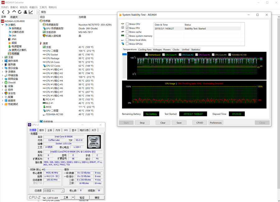 對于散熱器來說,壓制CPU溫度的任務向來放在首位。我們在BIOS中將風扇轉速設置為自動,使用AIDA64壓力測試單烤FPU一小時以上,此時CPU能夠保證全核4.6GHz頻率,核心平均溫度為95攝氏度。以240尺寸的冷排規(guī)格能夠壓制i9-9900K,Helor 240的散熱表現(xiàn)很不錯。
