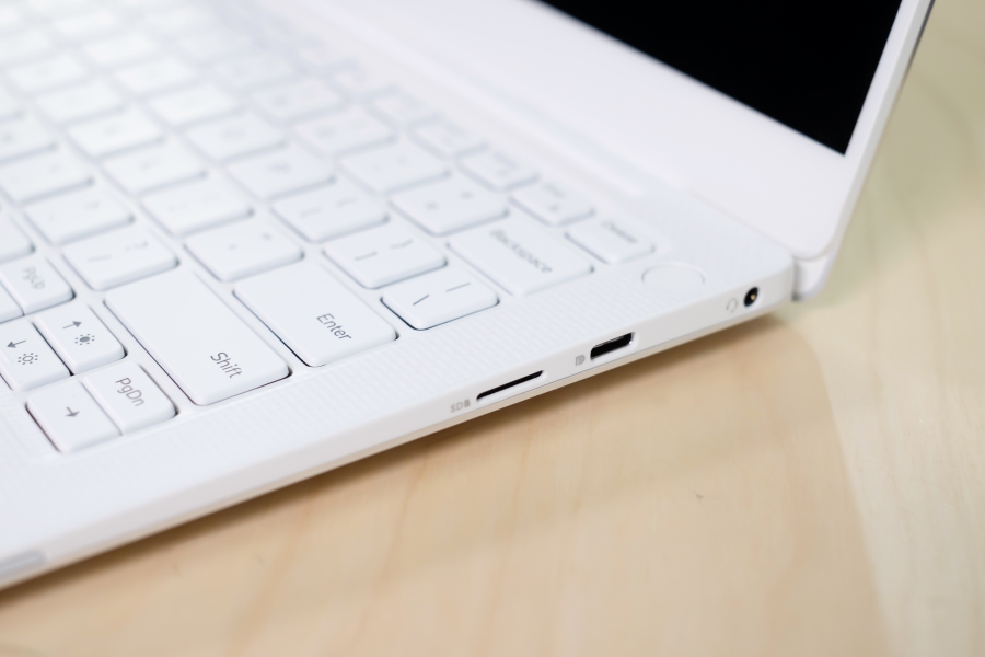 該機最具特色的地方莫過于C面,白色硅纖維(銀色版本為碳纖維材質(zhì))上覆蓋一層Velvecron SR-1?防污涂層。相比常見的金屬面板,硅纖維不僅重量更輕、散熱性更強,而且足夠堅韌,一直以來多被運用在F1方程式賽車、民航客機等領(lǐng)域當中。而鍵盤方面,XPS 13 9380采用的是標準的巧克力風格的背光鍵,鍵程為1.3mm,相比上代縮減了0.2mm。