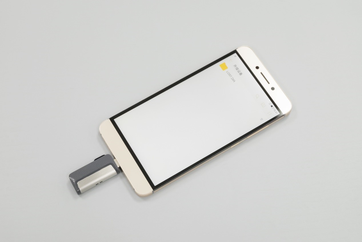 這款U盤最大的特點就在于Type-A/C雙接口,Type-A接口可以用于老式電腦,Type-C接口可以用于各種手機以及比較新的主板,畢竟USB Type-C接口也漸漸在普及,很多主板上已經帶有Type-A接口了,相信Type-C接口也是大趨勢。接著我們就來介紹下Type-C接口連接手機。