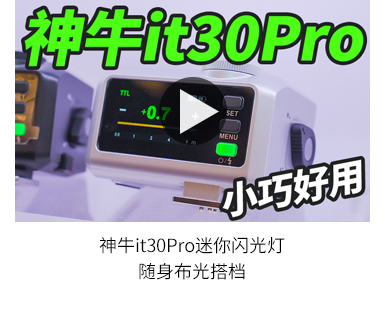 00:00:00神牛it30Pro迷你閃光燈,隨身布光搭檔如今很多相機(jī)為了輕量化,取消了機(jī)身閃光燈,為了滿足用戶需求,一些迷你閃光燈就應(yīng)運(yùn)而生了,比如我們這次在P&I現(xiàn)場(chǎng)看到的神牛it30Pro閃光燈