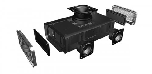 聲霸鑼專業版于上一代屢獲殊榮的音質表現及音箱架構的基礎上,做出一系列的音質提升。全新的音箱一如既往地通過如同書本大小的箱體提供強大、充盈的音質。 這款精巧的音箱藏有一套包含一個低音炮的五發聲單元系統,擁有兩個更靈敏且輕巧的1.5英寸高音單元提供遠場高頻播放、一個向上發射的低音炮呈現撼人心魄 的低音及一對左右兩側的低音共振膜進一步增強低音爆發力。聲霸鑼專業版也擁有兩個高性能功率放大器,一個專注于驅動低音與中音,另一個則專攻高音效果,能 在不影響低音表現的同時提供純凈、空間感強烈且均衡的音質。因此,聲霸鑼專業版可在不受聽音位置影響的情況下,呈現強勁、充盈的音頻表現。而低音炮以水平 放置在音箱頂部的設計能使音箱重心更低,使其更加穩定。除此之外,一體化的音箱內殼構造有助于降低震動噪音,提供更清澈、純凈的音質。