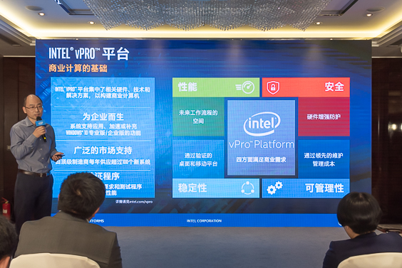 其中,英特爾博銳平臺是商務計算的基礎,該平臺技術依靠主動管理技術(AMT)輕松實現遠程維護,具有很高的可管理性。智能桌面虛擬化(IDV)可以在運用計算模型的同時,不犧牲用戶所需要的模型性能和移動性。Intel Unite解決了企業內部溝通的效率問題,可實現遠程展示、查看內容,及溝通交流等。