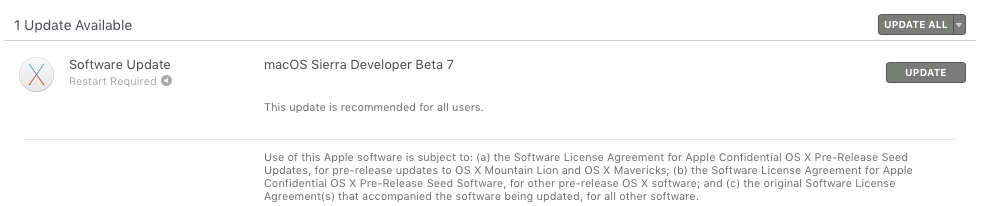 自從在2016全球開發(fā)者大會展示了Mac的軟件更新后,Apple今天發(fā)布了macOS Sierra的第七個開發(fā)者版本預(yù)覽。用戶目前可在Mac應(yīng)用商店看到最新的發(fā)布。