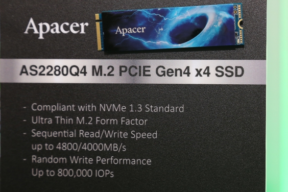 今年臺北電腦展,支持PCIE Gen4 x4的SSD無疑是熱點之一,很多廠商都有推出,而宇瞻(Apacer)同樣帶來了AS2280Q4 M.2 PCIE Gen4 x4 SSD。