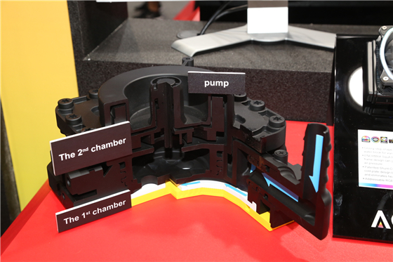 安耐美還展出了旗下的最新科技:雙腔體冷頭。雙腔體設(shè)計能夠有效提高散熱效率,并顯著延長冷頭壽命。安耐美旗下的AQUAFUSION一體式水冷就搭載了這一技術(shù)。