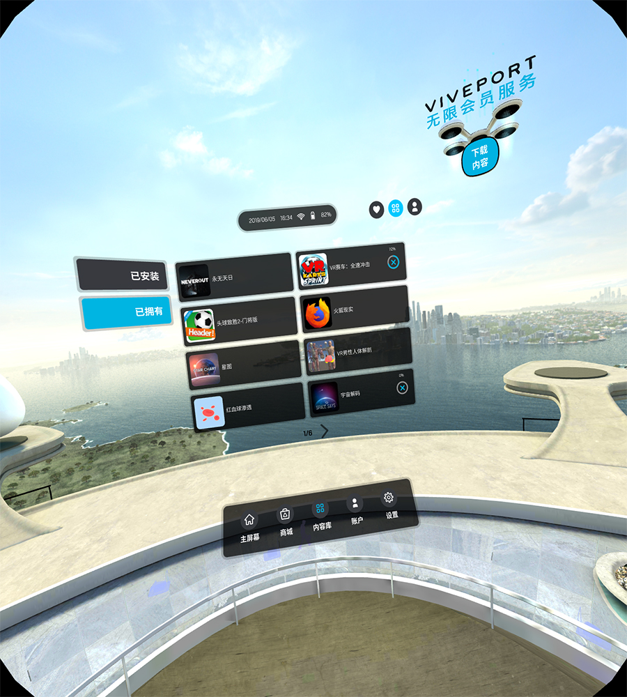 玩VR除了操控體驗好之外,內容也是不可或缺的,有線VR設備只要能接上電腦,通過Steam平臺就能玩上大量的優質VR游戲,串流電腦的VR在線視頻就能享受VR影片,而一體機就不行了,因此一體機的VR設備中,內置的資源是否豐富同樣也是這款產品的核心競爭力。