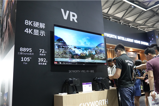在CES Asia 2019上,創維展出了旗下最新的VR一體機設備V901。它從參數與功能上就顯示出了強勁的性能:8K硬解,4K顯示。
