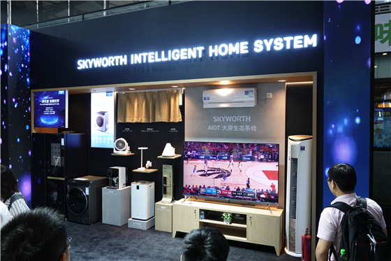 除了V901 VR設備,創維展臺還展出了自家的AIOT大屏生態系統。以創維智能電視為核心節點的場景,包含了包括智能空調、智能洗衣機、智能門鎖、智能冰箱等一整套家電設備,能夠進行更人性化的操控與互動。