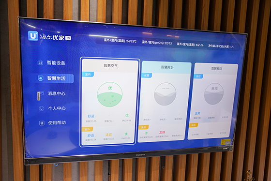在客廳的懸掛式彩電上,你不僅能看到豐富多彩的電視節目,還能實時獲取室內室外的空氣狀況,水質情況以及門鎖等安防相關的信息。使用戶能對家中的情況都了如指掌,而空氣的調節就依靠空調來實現,水質情況的信息就與智慧浴室密切相關,而安防的情況由智慧安防來杜絕一切隱患。